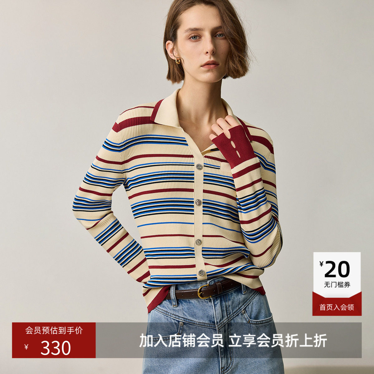 TB针织短袖女装tb春夏季V领设计感小众条纹开衫修身短款显瘦外套