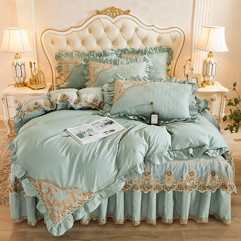 欧式全棉四件套床裙纯棉床罩双人1.8米床纯棉夹棉加厚240被套床单