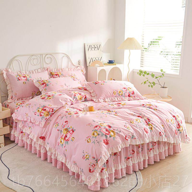 仙女款全棉荷叶边四件套公主风床裙纯棉被套1.5m1.8米亲肤床品