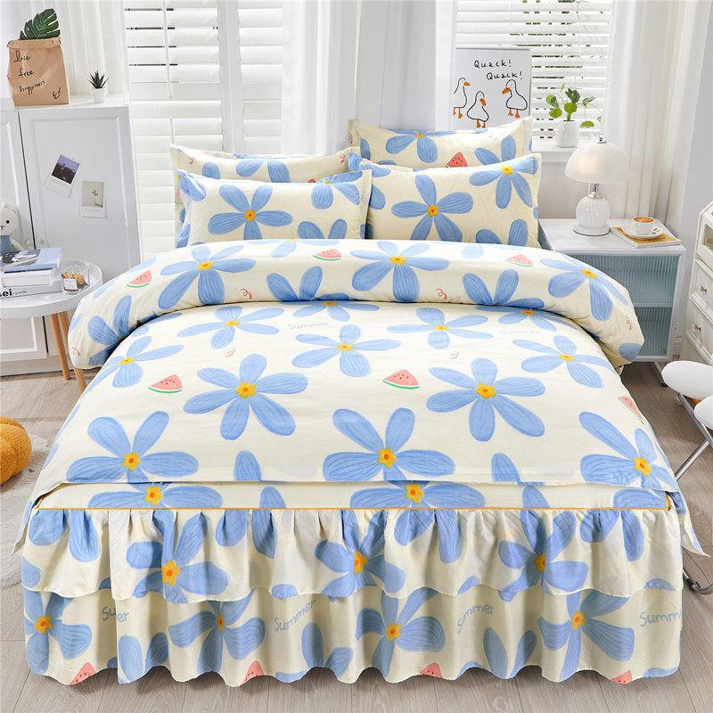 纯棉夹棉床裙式四件套加厚床上全棉卡通被套床罩床套1.5m1.8m2米