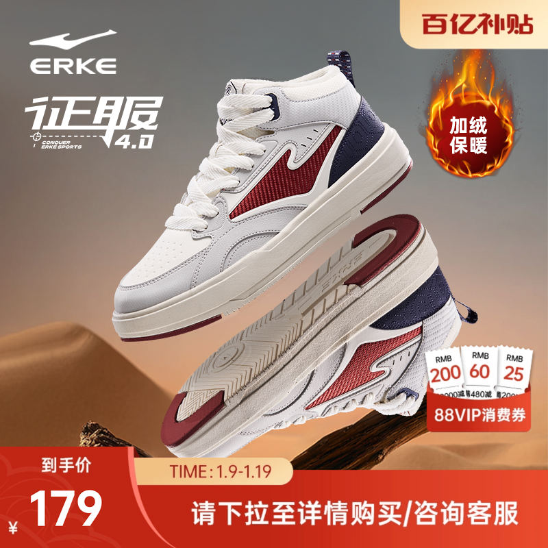 征服鸿星尔克男鞋运动鞋冬季新款大棉鞋加绒男士鞋子高帮加厚板鞋