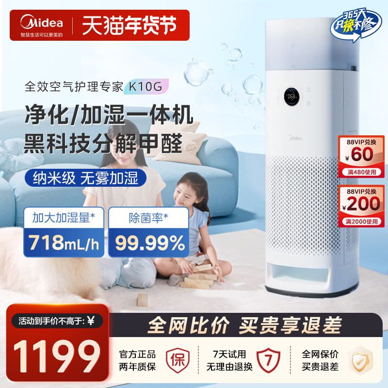 政府补贴美的空气净化器K10G加湿一体全效家用除醛森林家去异味