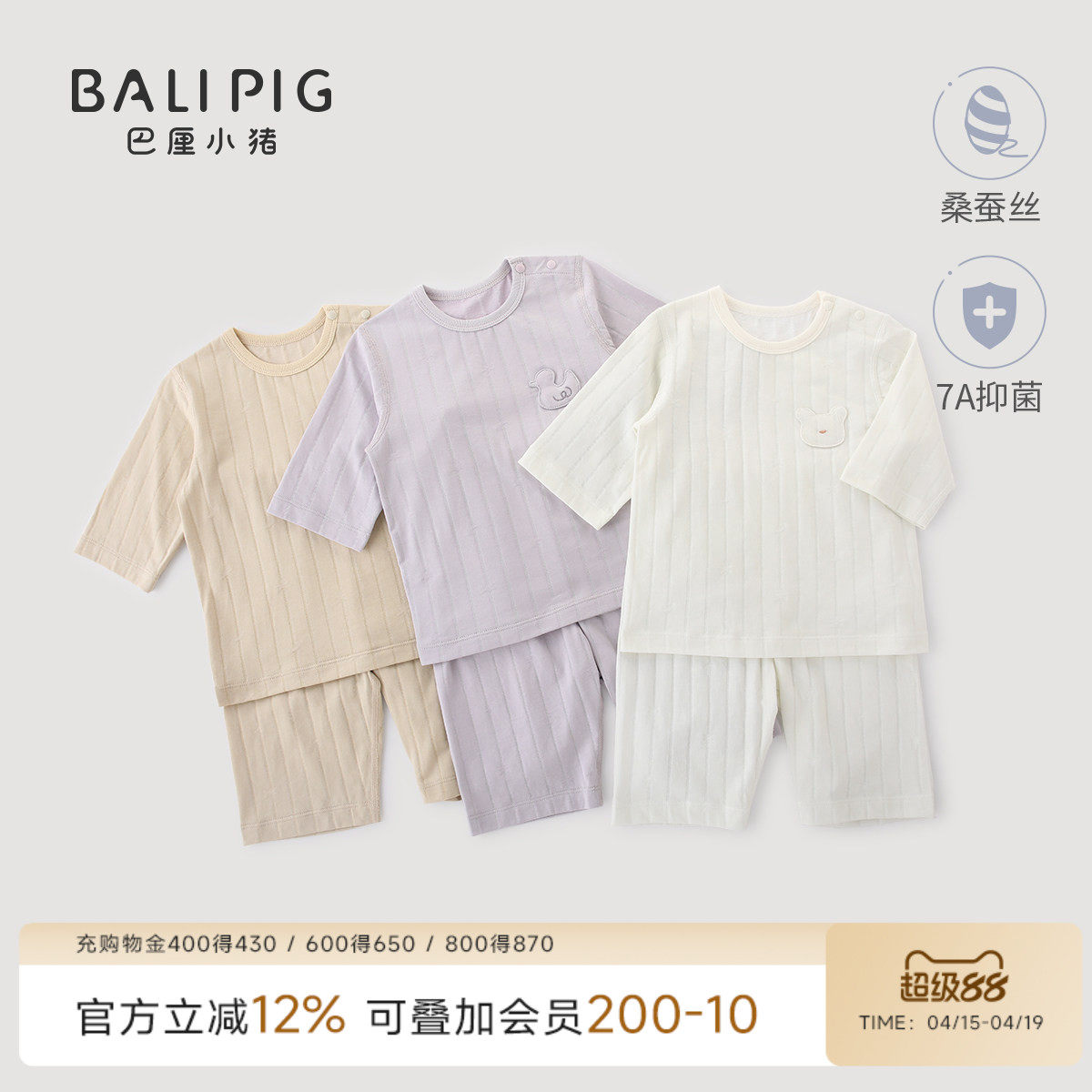 【桑蚕丝】儿童睡衣夏季七分套装男女童空调服婴儿衣服宝宝家居服