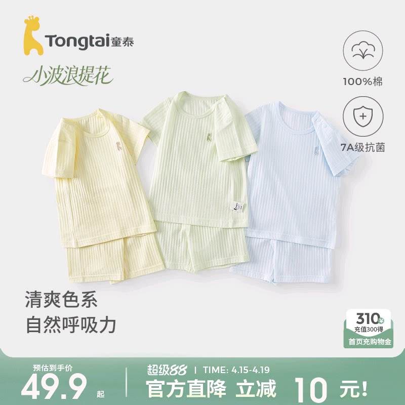 童泰婴儿套装纯棉夏季薄款男女宝宝衣服儿童内衣提花网眼短袖短裤