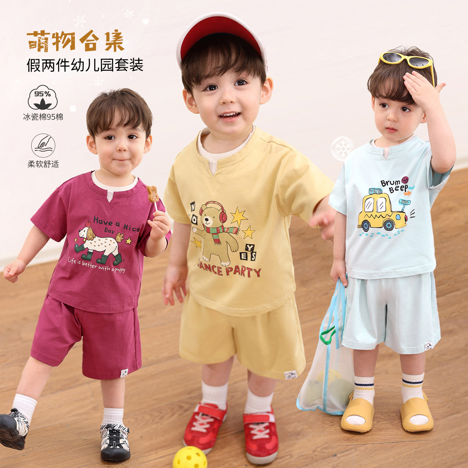 小O爸男婴童 宝宝幼儿园套装夏季短袖2026新款婴儿假两件运动夏装