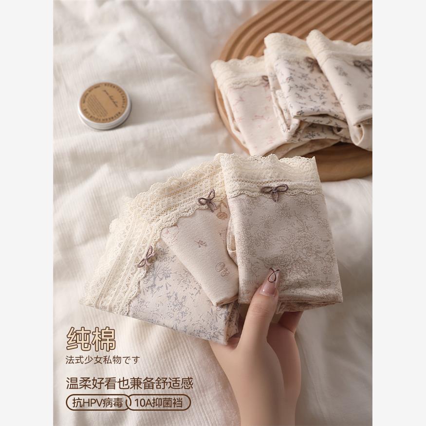 法式小复古芭蕾风温柔少女蕾丝内裤女生纯棉裆女款中腰三角裤新款