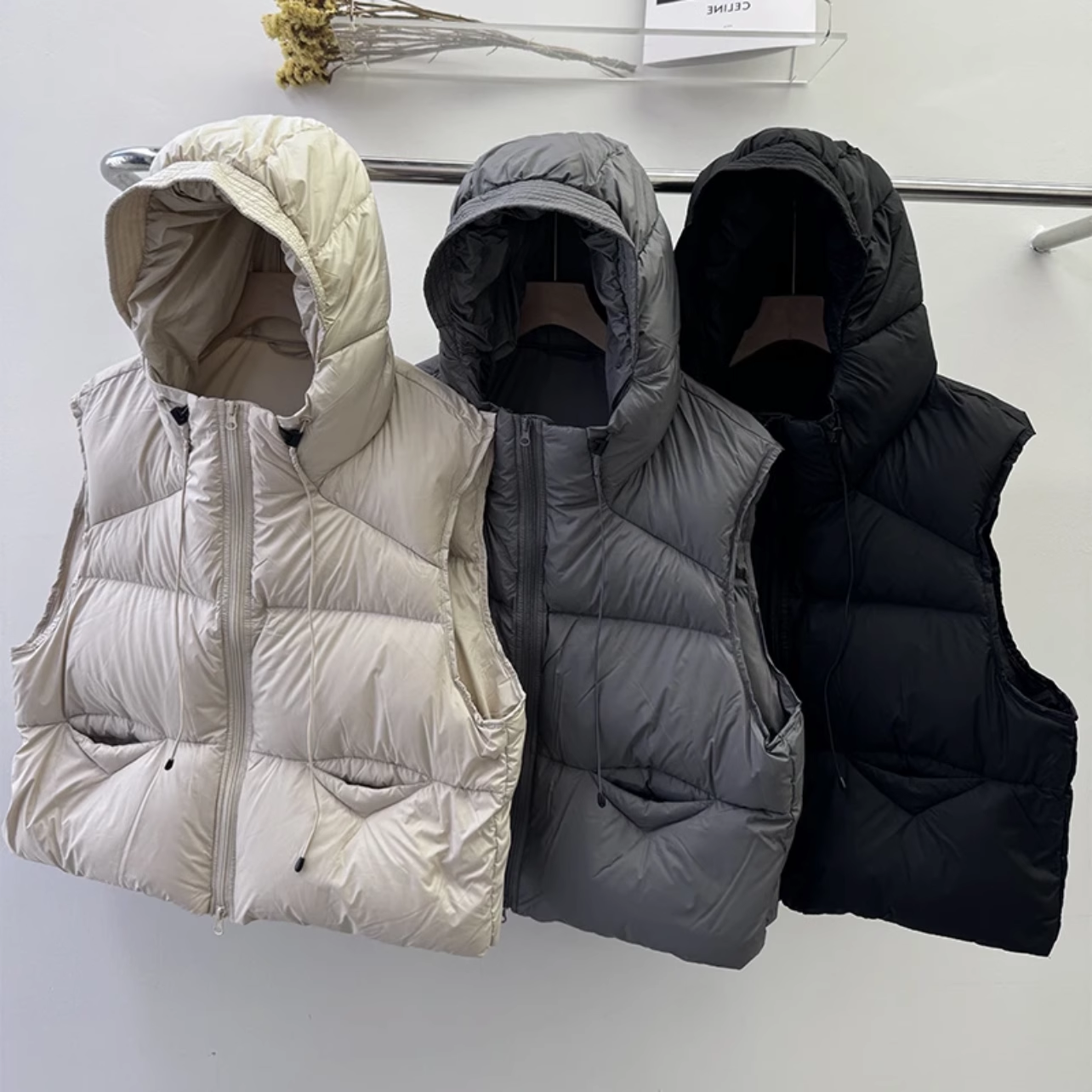 羽绒马甲女秋冬新款韩版短款坎肩外穿宽松百搭连帽白鸭绒马夹外套