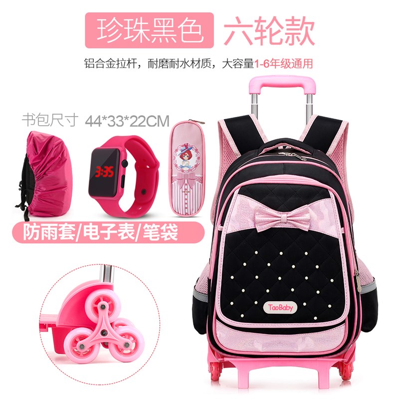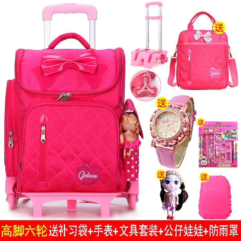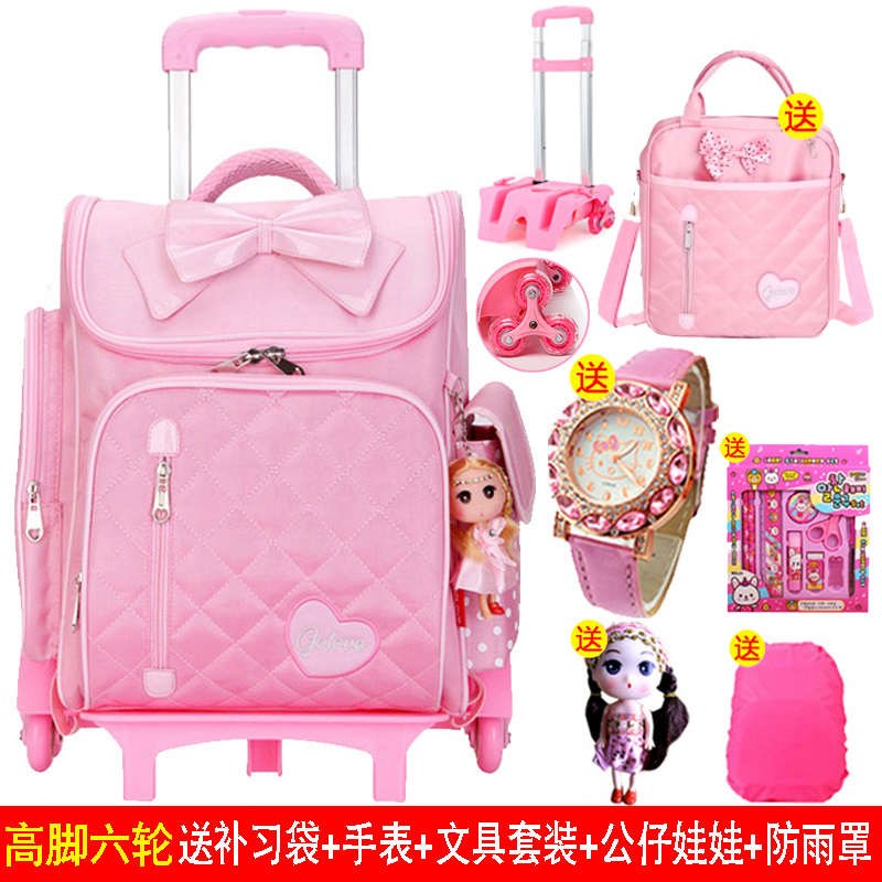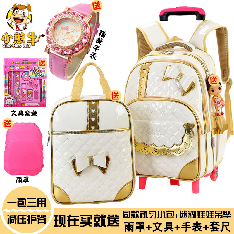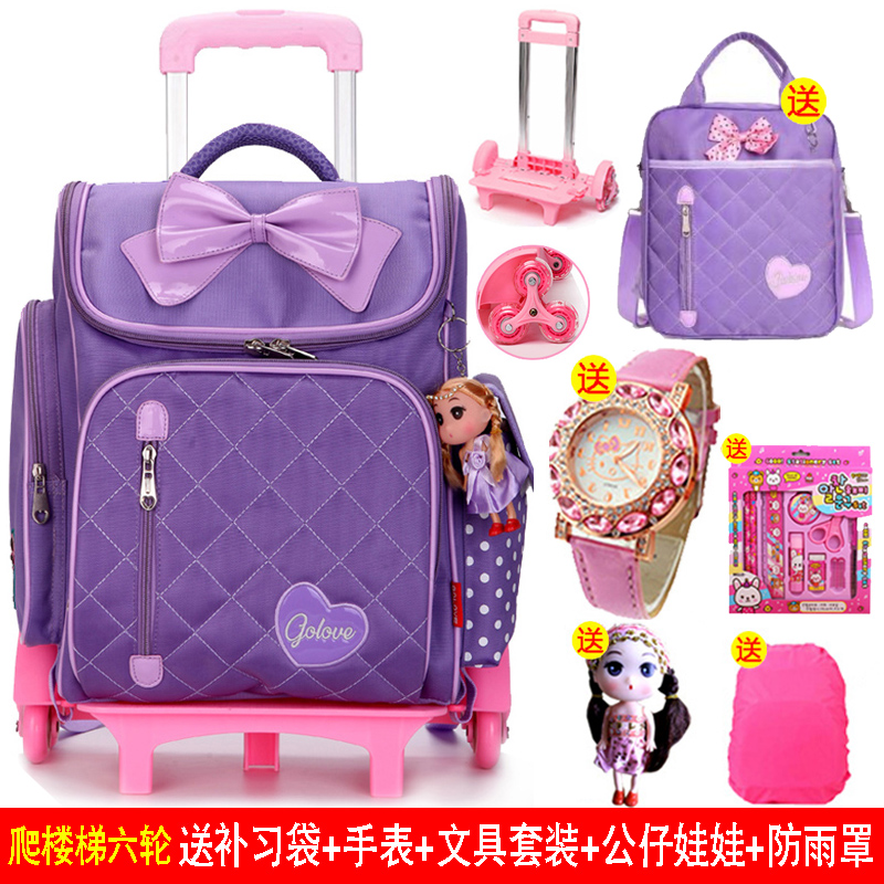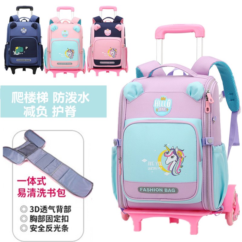 小学生韩版女孩三轮爬楼梯拉杆书包1-3-5年级儿童6-12周岁可拆卸