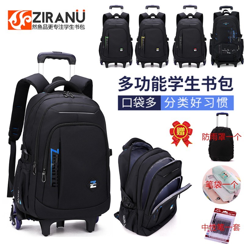 自然鱼新款男生拉杆书包两用可拆初高中生减负大容量休闲背包韩版