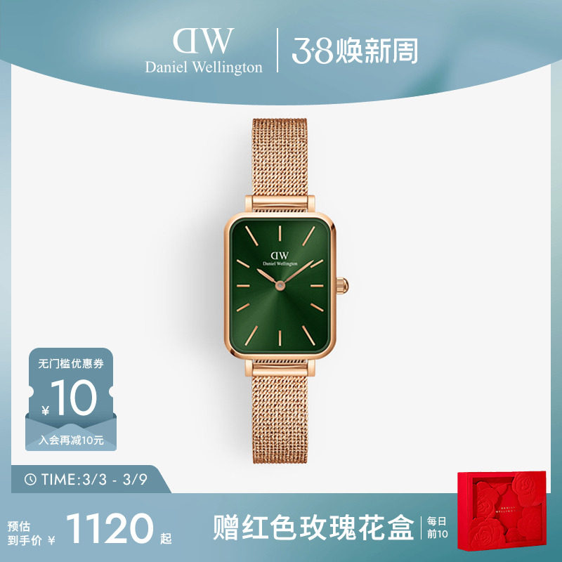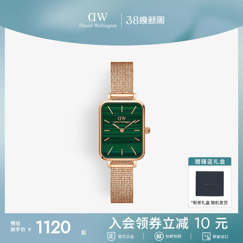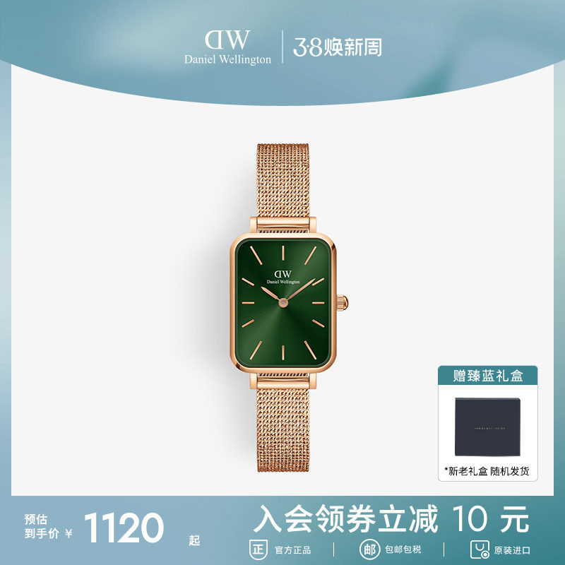 DW女表女士手表QUADRO复古小绿表轻奢小众手表石英腕表经典礼物