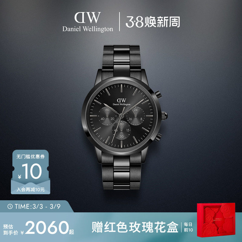 DW男表手表男士ICONIC三眼计时精钢石英腕表商务男表送男友礼物