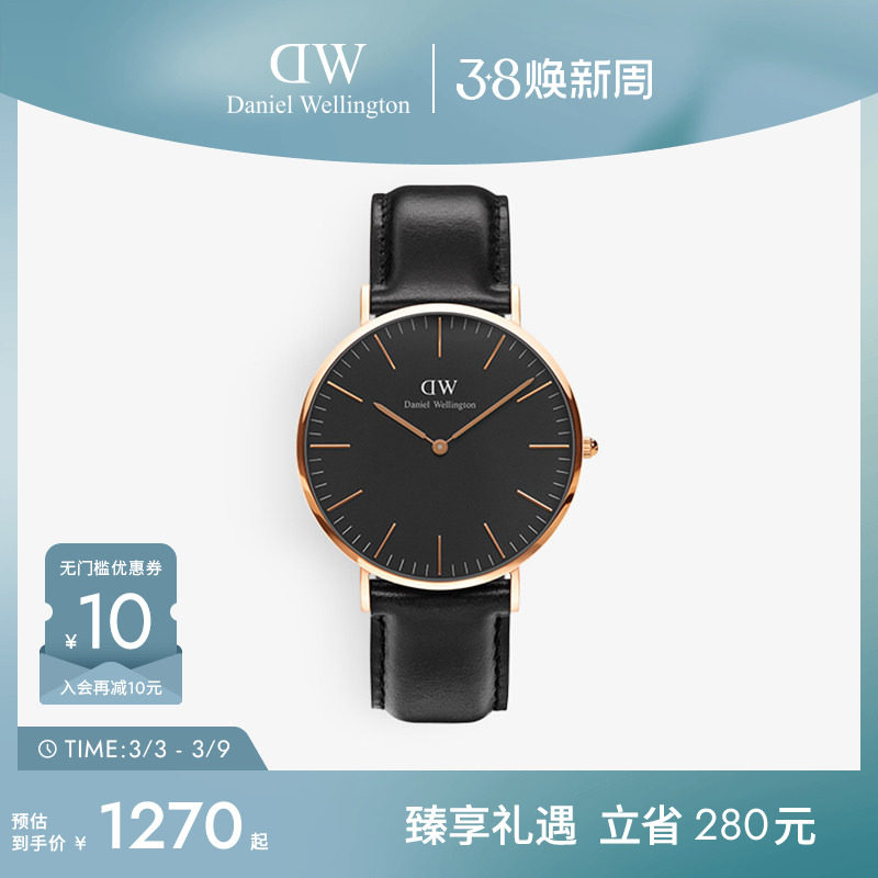 DW手表男女同款 CLASSIC系列经典轻奢时尚腕表酷黑皮带简约石英表