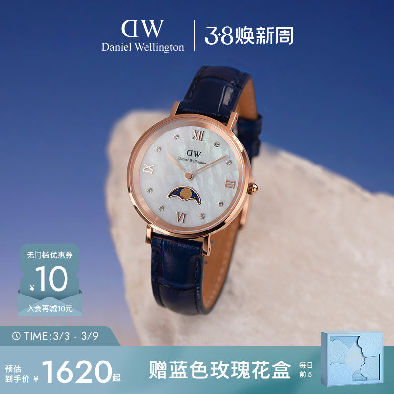 DW手表月相手表 蓝月曲系列腕表石英轻奢小众手表女2025新款礼物