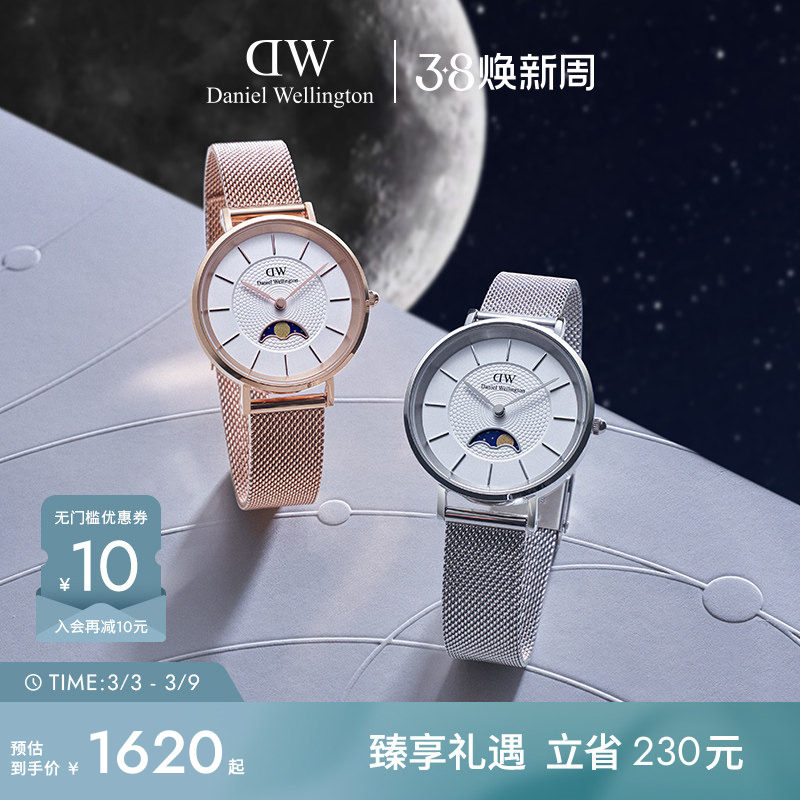 DW手表女 小月曲系列月光白月相腕表女士轻奢小众石英表高级感