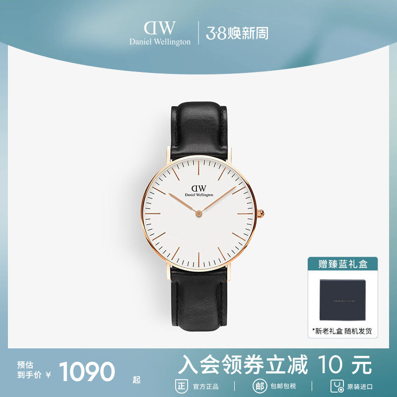 DW手表男款 CLASSIC系列经典复古黑色皮质圆表商务石英表男士腕表