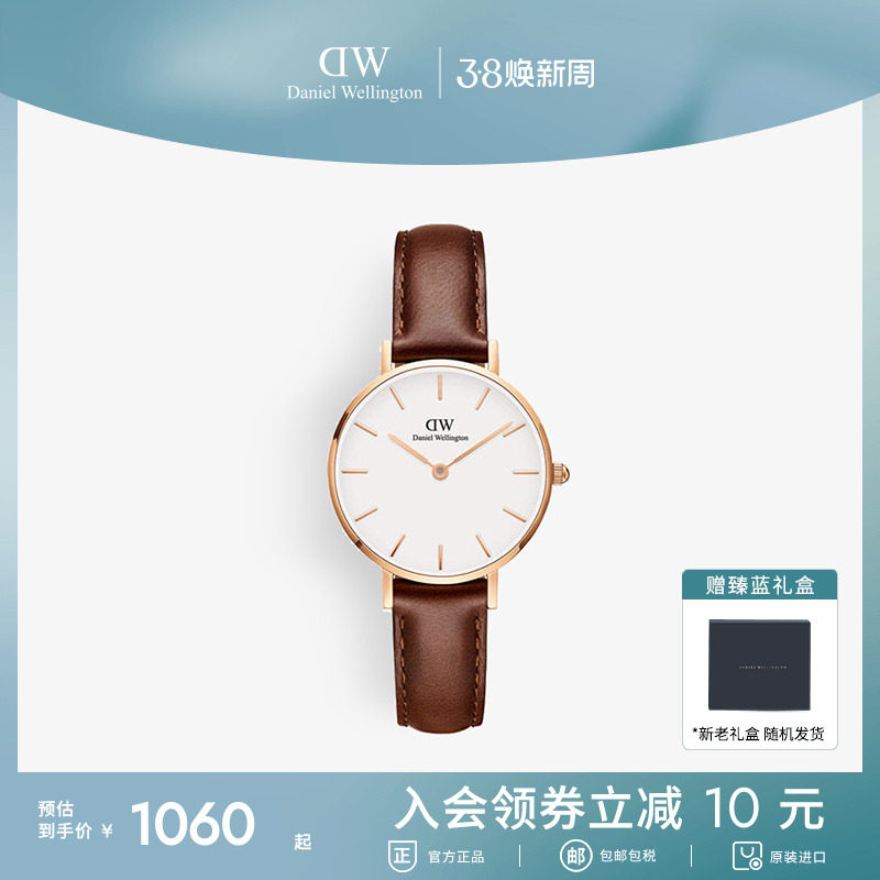 DW手表女士 PETITE系列皮质石英表女表轻奢小众欧美圆表时尚正品