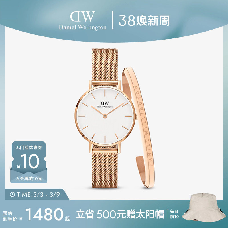 DW手表手镯套装 PETITE系列腕表女玫瑰金色镯子套装品牌轻奢设计