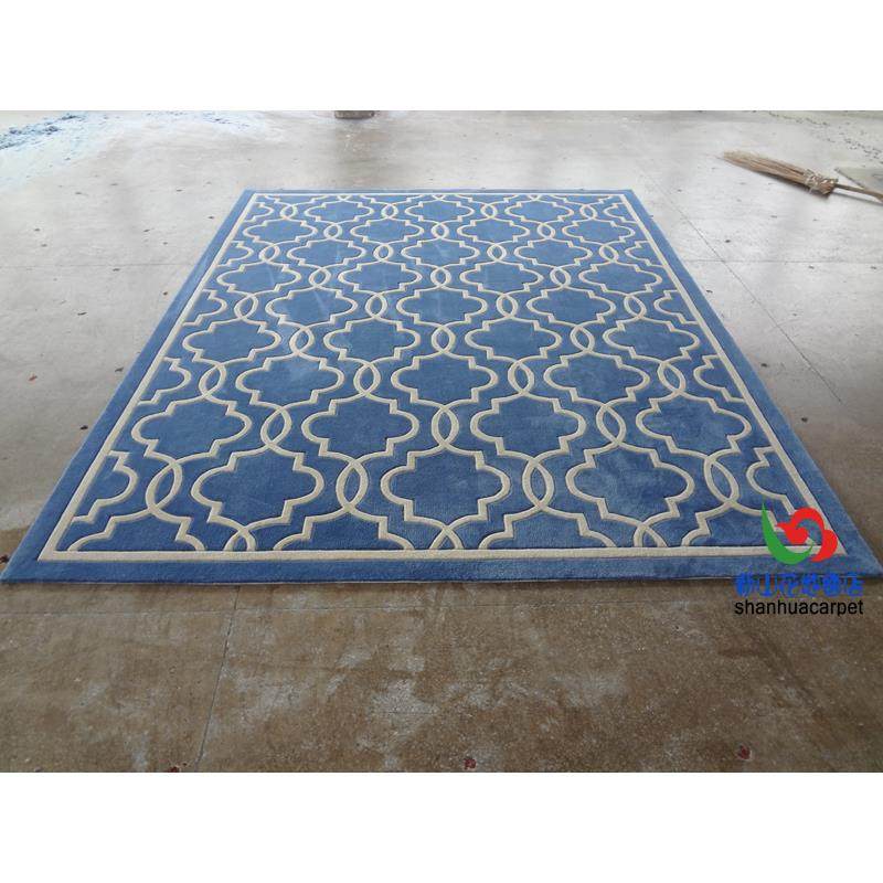 现代简约蓝色田园几何格子欧式客厅茶几沙发地毯卧室客房大厅地毯