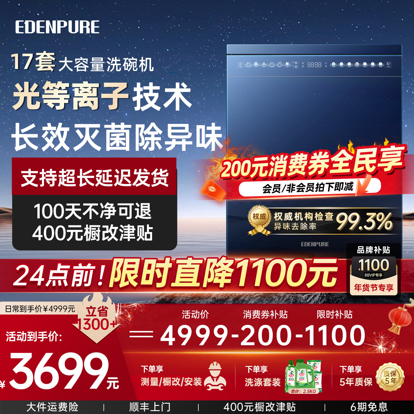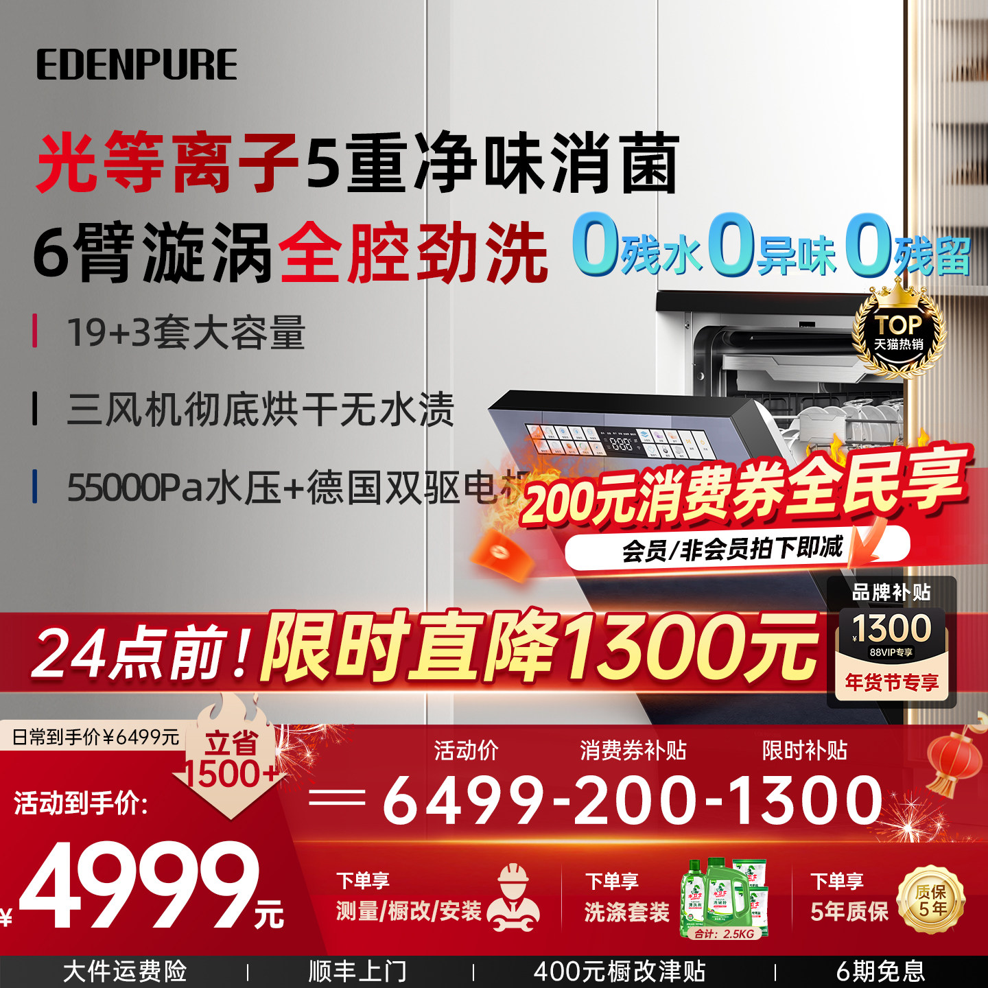 宜盾普D5洗碗机光等离子除异味嵌入式全自动家用消毒柜一体机19套