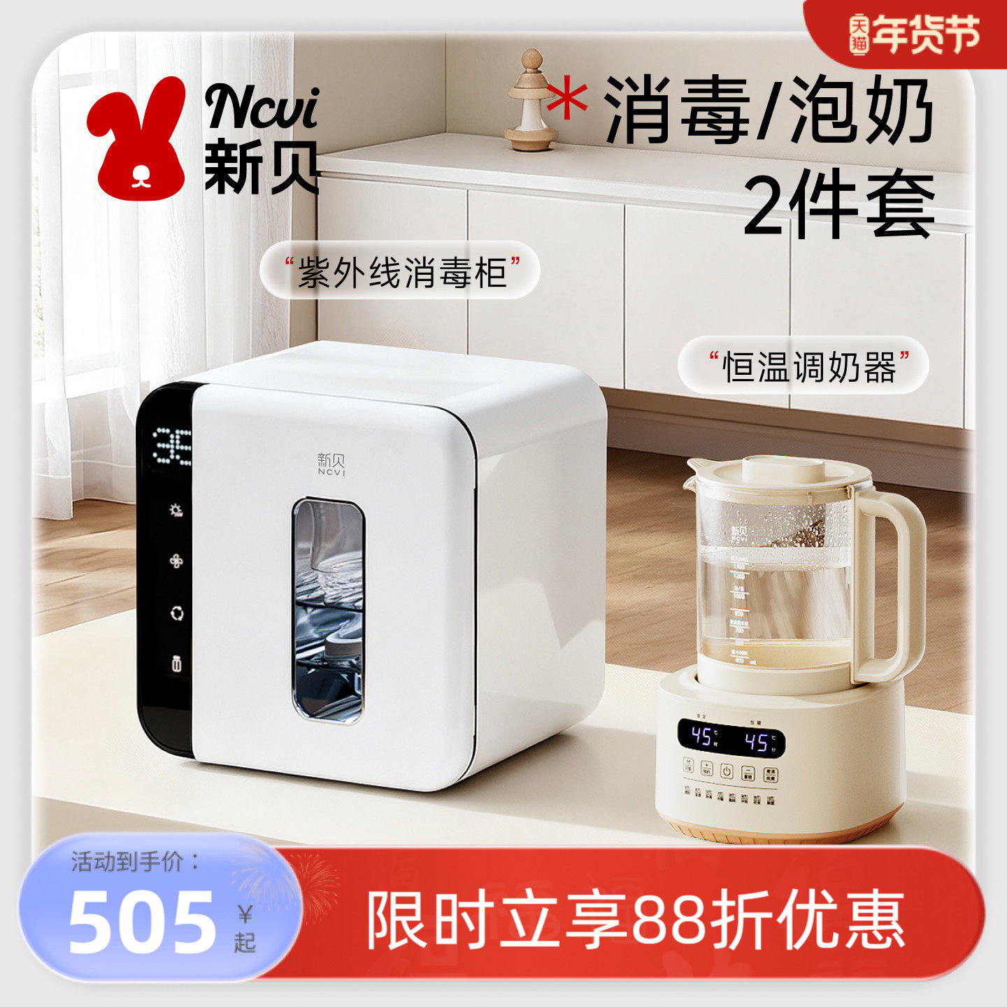 新贝婴儿奶瓶消毒器机带烘干二合一家用消毒柜宝宝专用蒸汽消毒锅