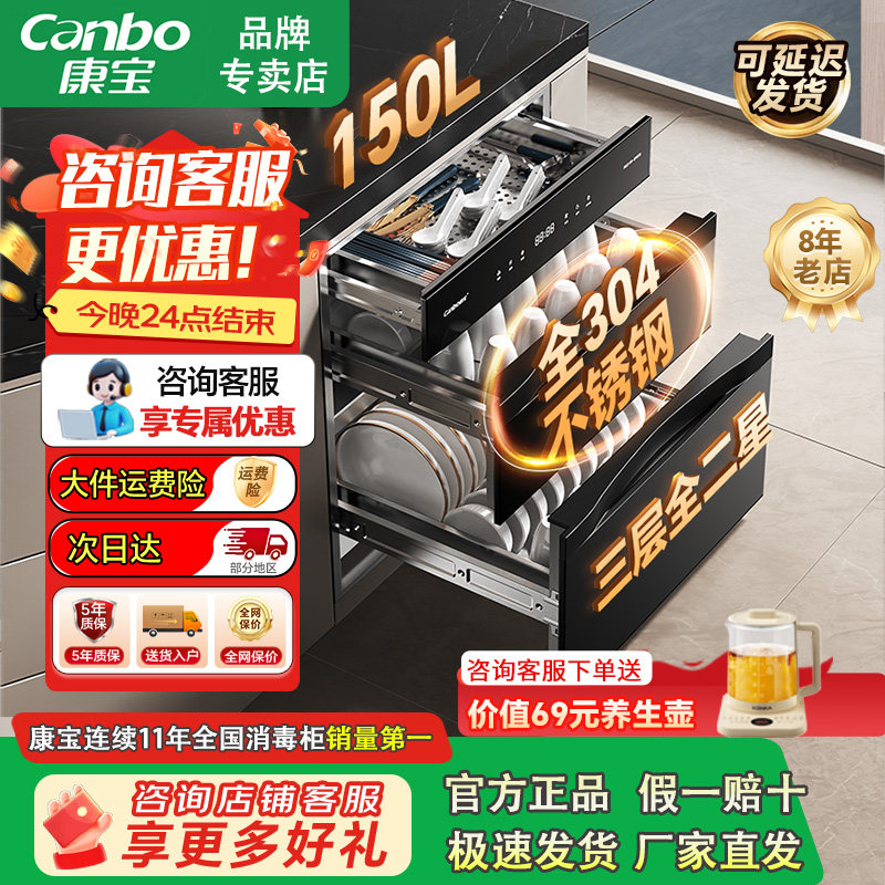 康宝新款全304不锈钢150L御风家用消毒柜嵌入式厨房碗筷收纳烘干
