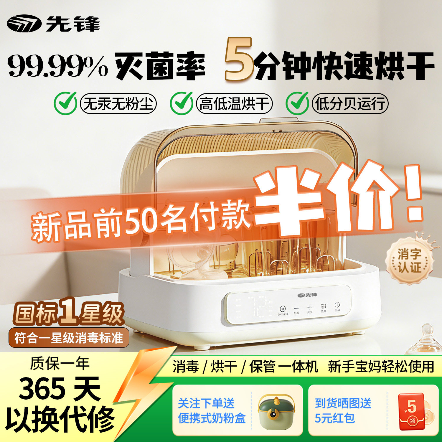 先锋奶瓶消毒器婴儿宝宝专用紫外线带烘干二合一体机家用消毒柜机