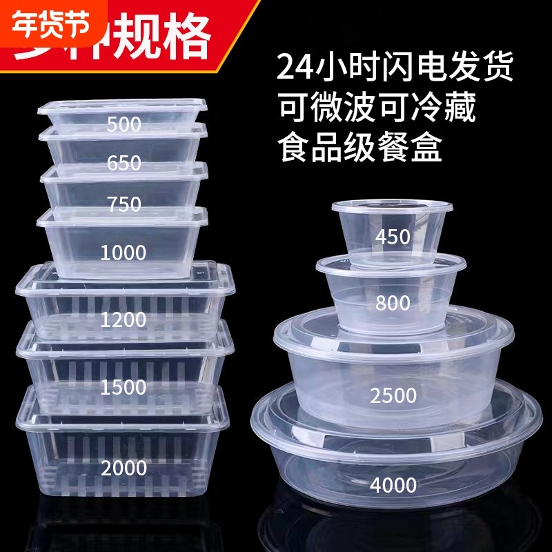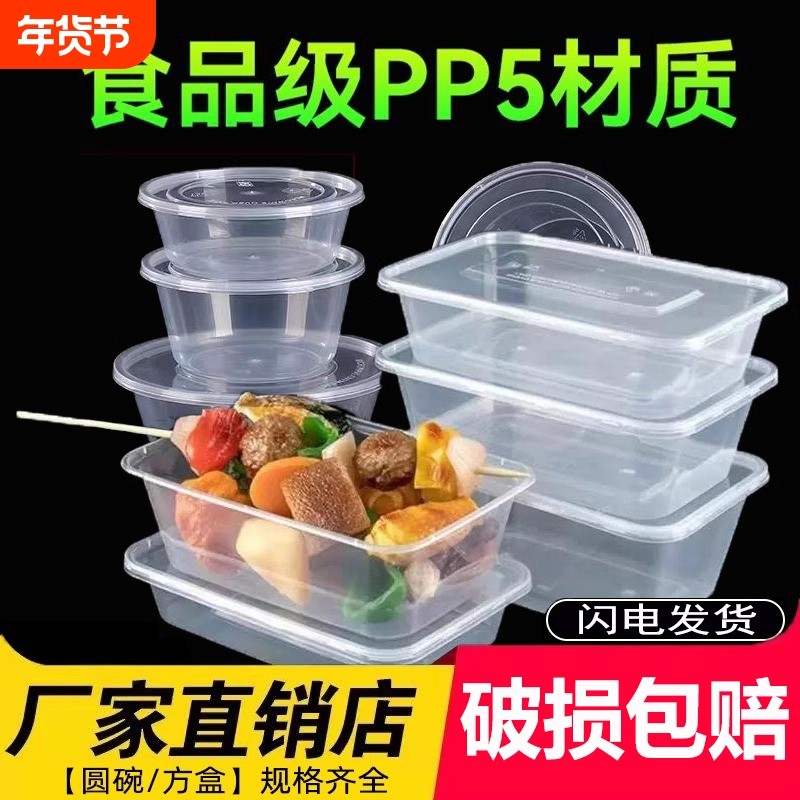 一次性餐盒圆形打包盒长方形饭盒加厚食品级塑料碗外卖盒家用带盖
