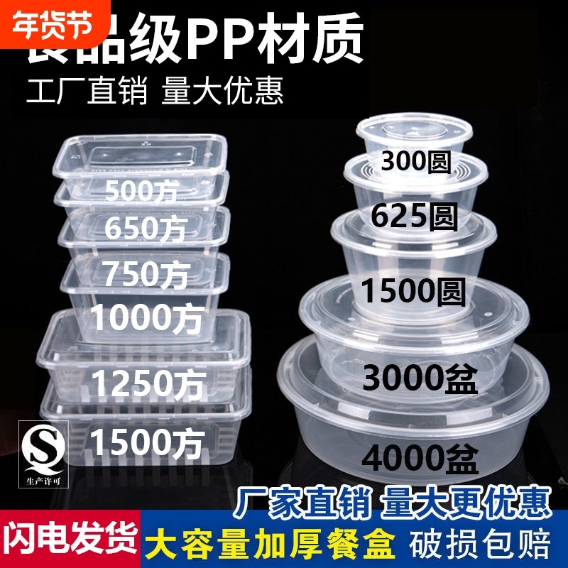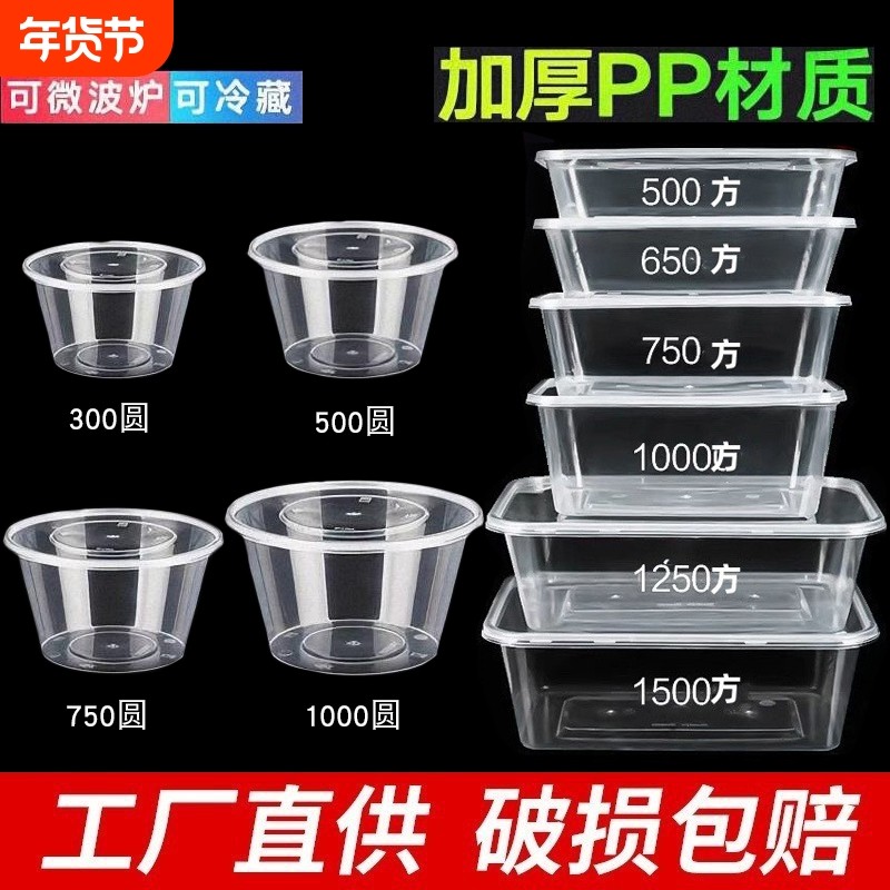 圆形一次性餐盒长方形外卖打包盒饭盒加厚食品级PP商家用汤碗带盖