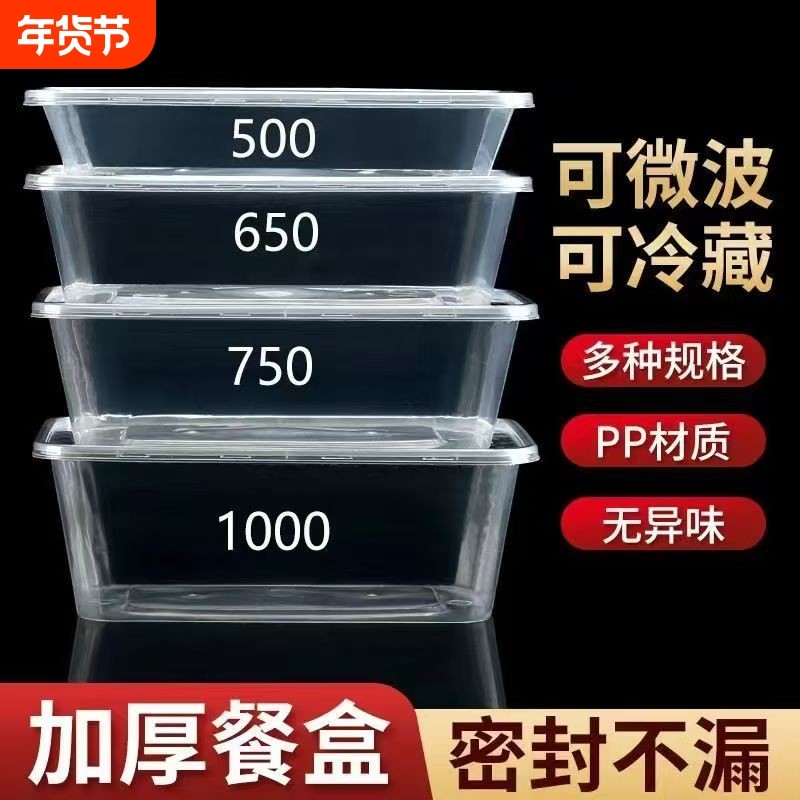 一次性餐盒500/1000ml长方形加厚方盒商用塑料透明外卖饭盒打包盒