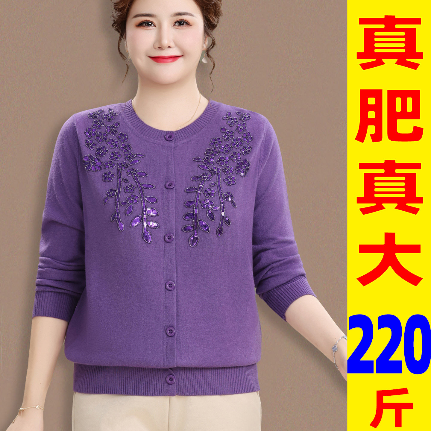 胖妈妈薄款毛衣开衫系扣加肥加大码中老年春低领针织打底外搭上衣