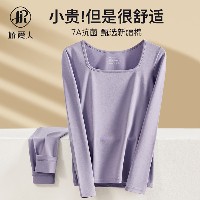 顶呱呱打底内衣低领薄款保暖内衣套装修身纯棉秋衣秋裤女士棉毛衫