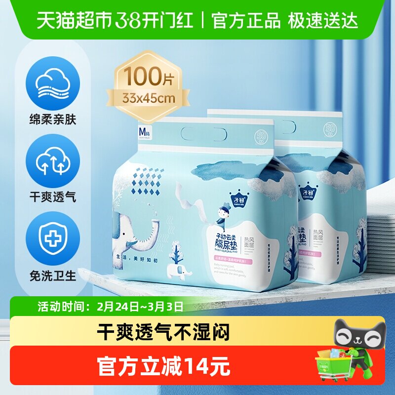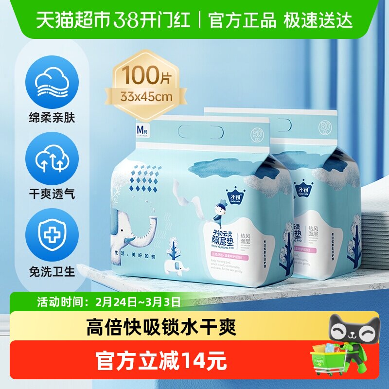 子初婴儿隔尿垫一次性33*45cmM码100片宝宝尿垫护理垫防水透气