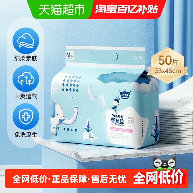 子初婴儿一次性隔尿垫M50片33*45cm新生护理垫宝宝尿垫透气尿片