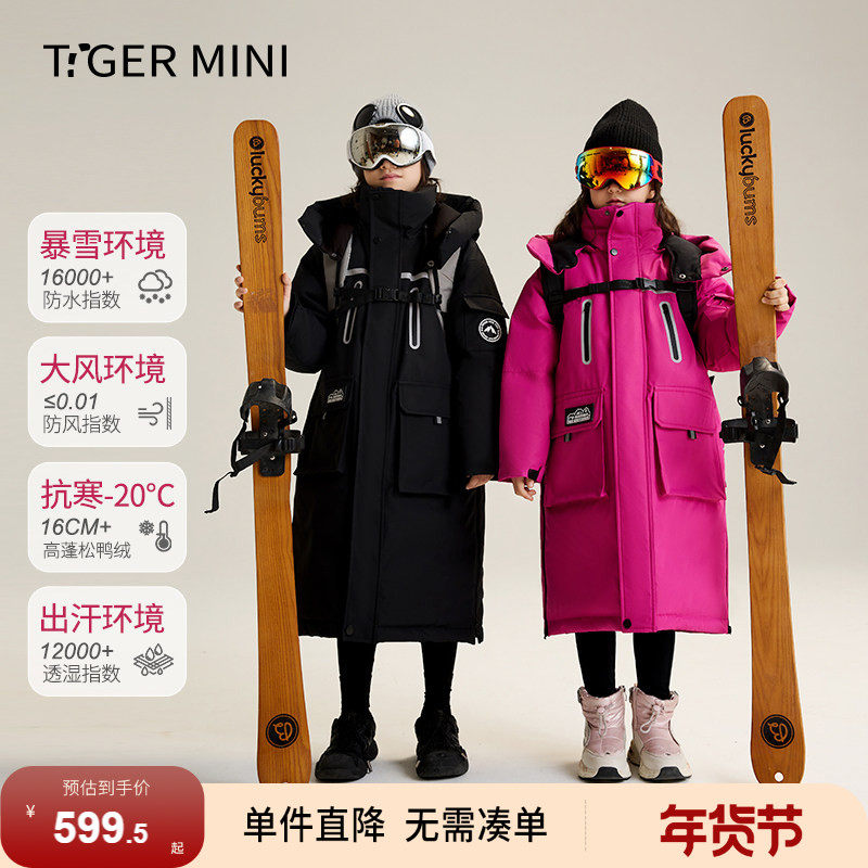 雪中飞儿童中长款羽绒服男女童2025新款加厚户外防水滑雪保暖外套