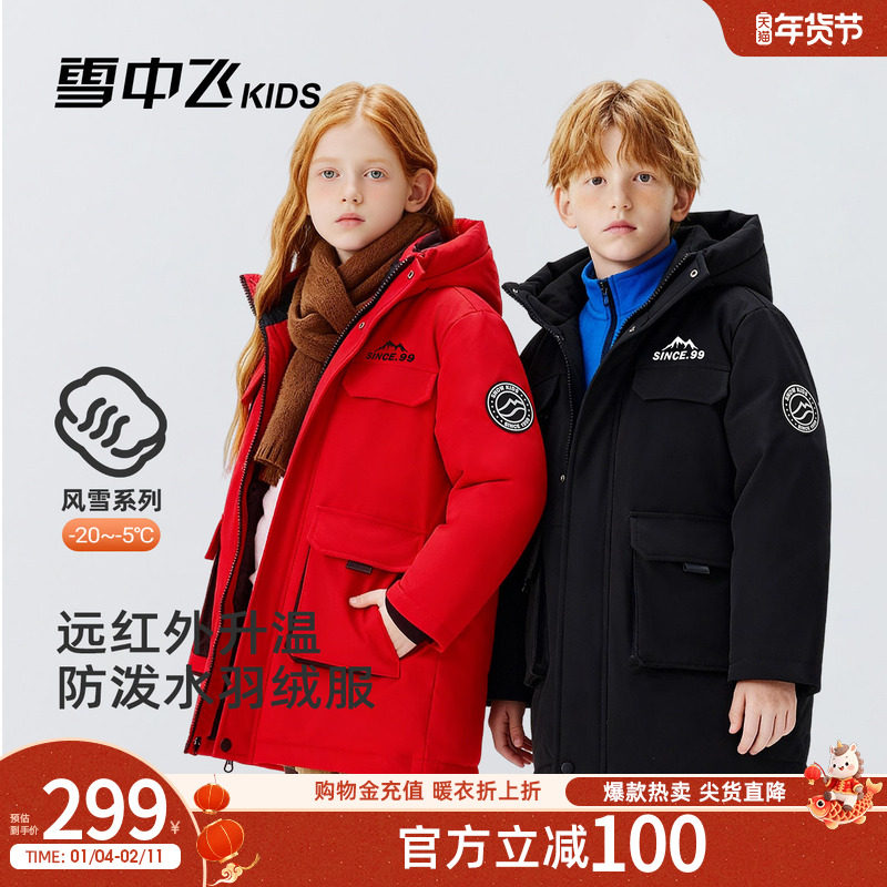 【远红外】雪中飞kids儿童羽绒服男童冬季女童加厚中长款保暖外套
