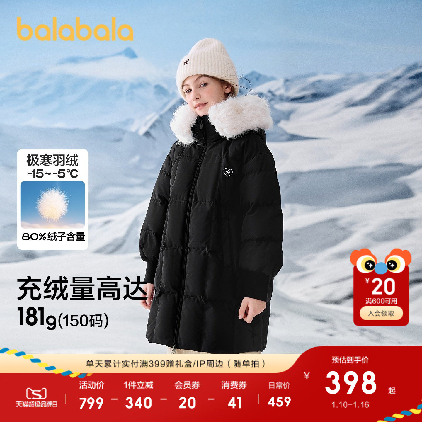 巴拉巴拉儿童羽绒服女童户外防护加厚保暖冬中长款2025年新款外套