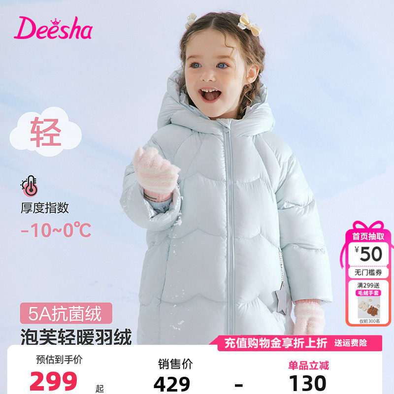 笛莎官方旗舰童装女童中长羽绒服秋冬季新款宝宝儿童三防加厚外套