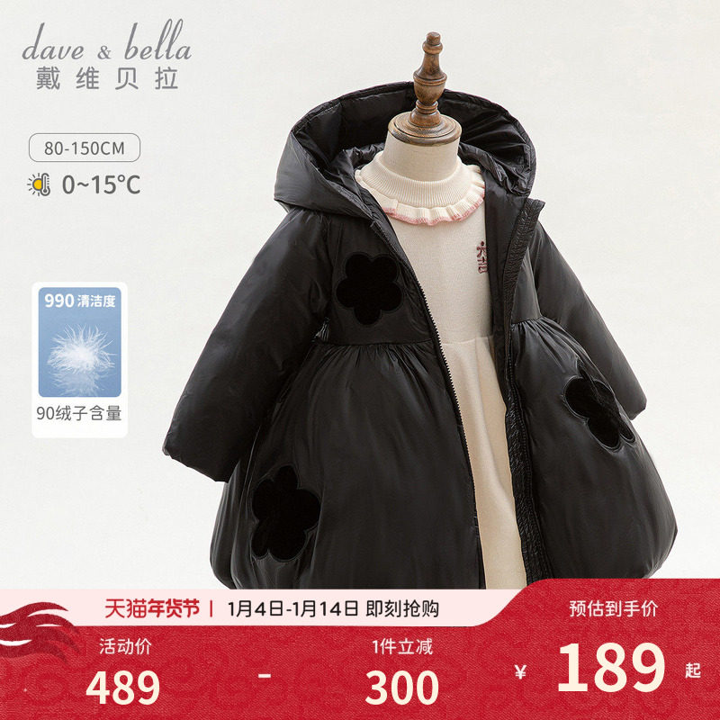 戴维贝拉女童羽绒服中长款冬装三防儿童宝宝保暖防风羽绒外套童装