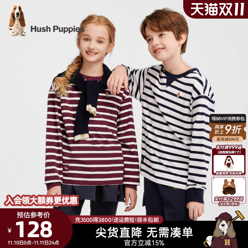暇步士童装儿童条纹T恤衫25秋新品男童运动t恤宽松女童休闲圆领衫