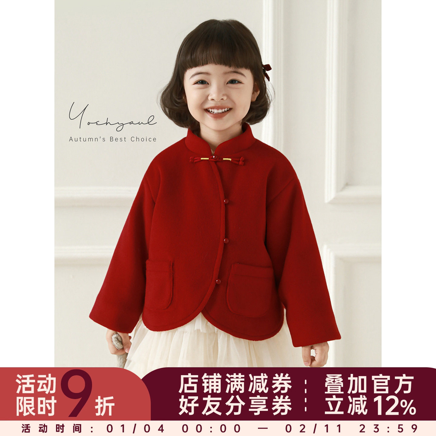 幼悠女童2025冬季新款中式盘扣短款外套红色保暖小女孩可爱拜年服