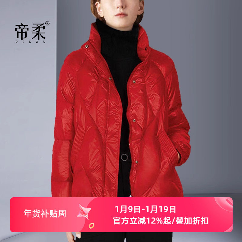 歌莉娅95%鹅绒服红色羽绒服女冬季本命年穿搭小个子轻薄短款外套