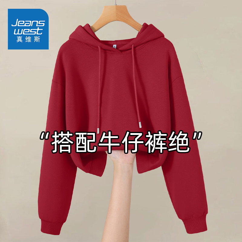 NOE真维斯红色卫衣女春秋款2025新款爆款小个子短款外套女款春