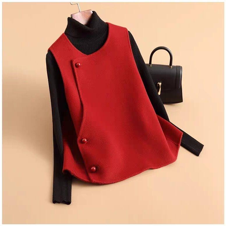复古红色小香风宽松短款羊毛双面呢大衣女秋冬新款小个子毛呢外套