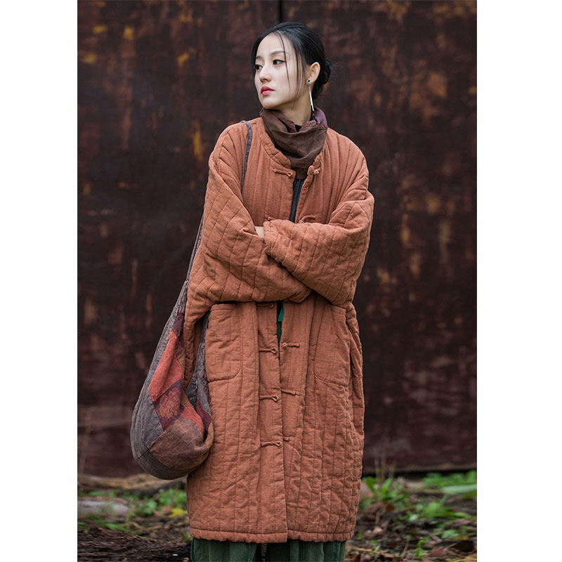 新中式棉麻棉袄女冬季新款中长款加厚棉服复古盘扣棉衣~清仓特卖