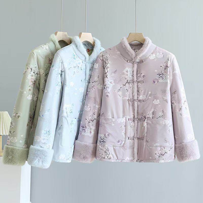 中式加厚冬季国风棉袄新款妈妈复古盘扣棉衣加绒中国棉服外套保暖