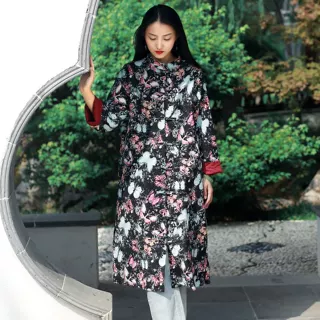 - 印花棉衣女中长款