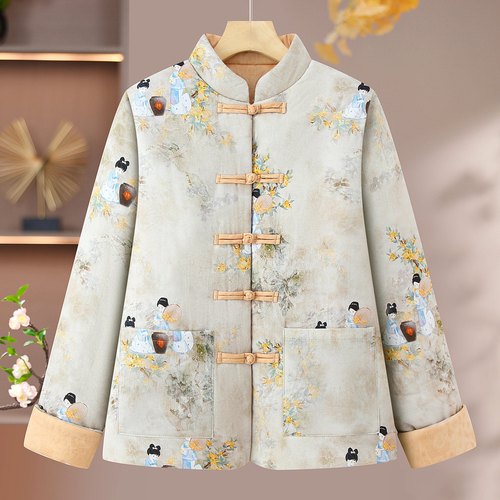纯棉棉服新中式国风复古盘扣棉衣中老年女装棉袄妈妈女双面穿唐装