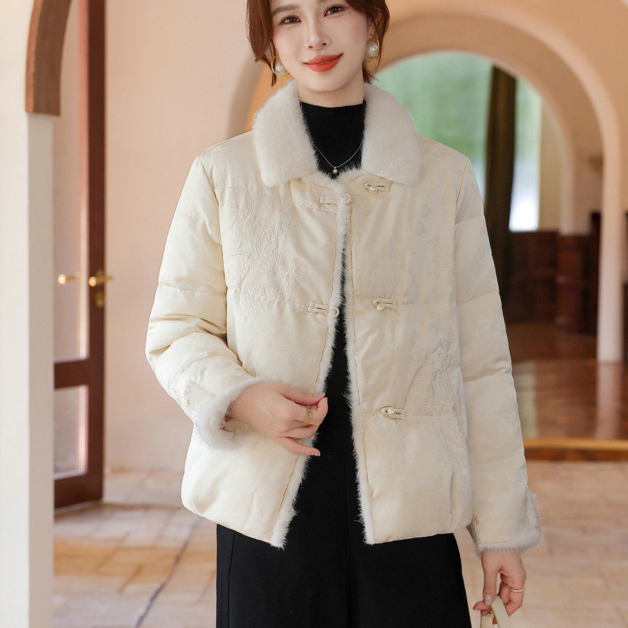 新中式国风提花刺绣加厚保暖棉服女2025秋冬新款复古盘扣棉衣外套