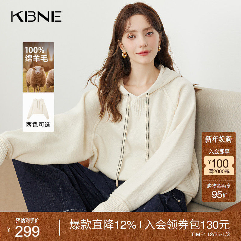 KBNE羊毛白色针织衫长袖卫衣2025新款气质毛衣慵懒宽松上衣春秋女