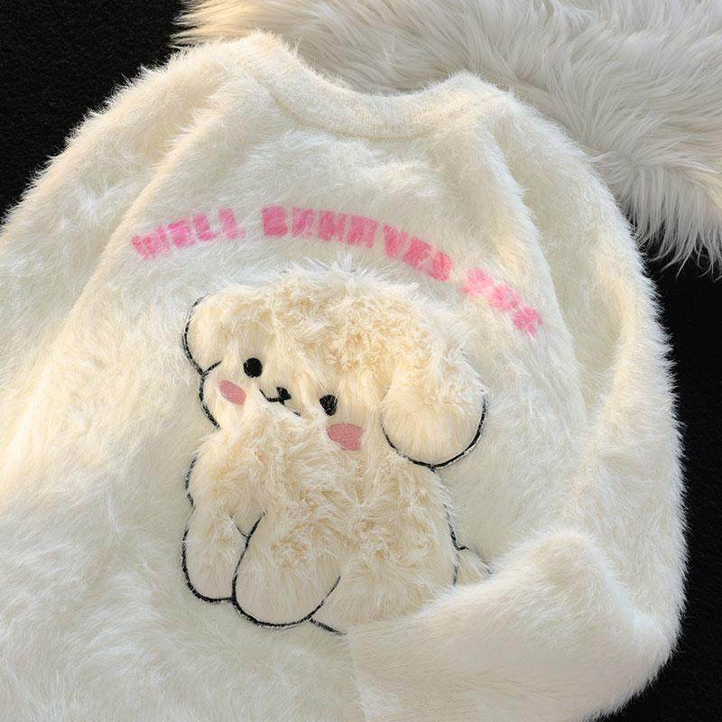 软糯3D立体水貂绒毛衣女冬季加厚2025新款慵懒风宽松白色针织衫女